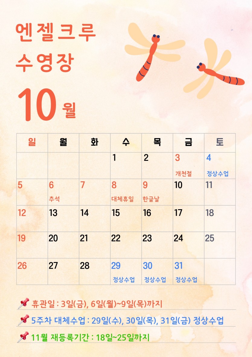 ✨[엔젤크루 수영장 10월 일정 안내]✨