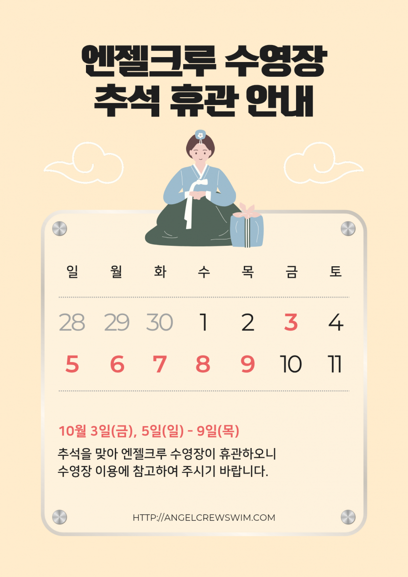 10월 3일(금), 10월 5일(일) ~ 9일(목) 휴관합니다.